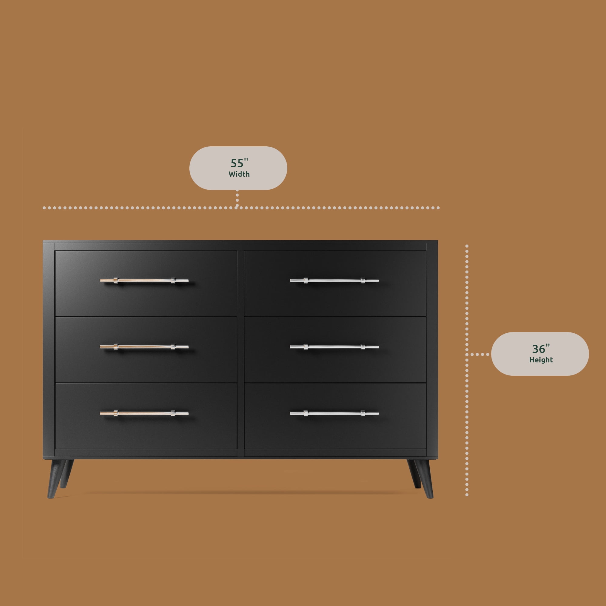 Black Ash Wood Double Dresser W 6 Drawers Lenia Article