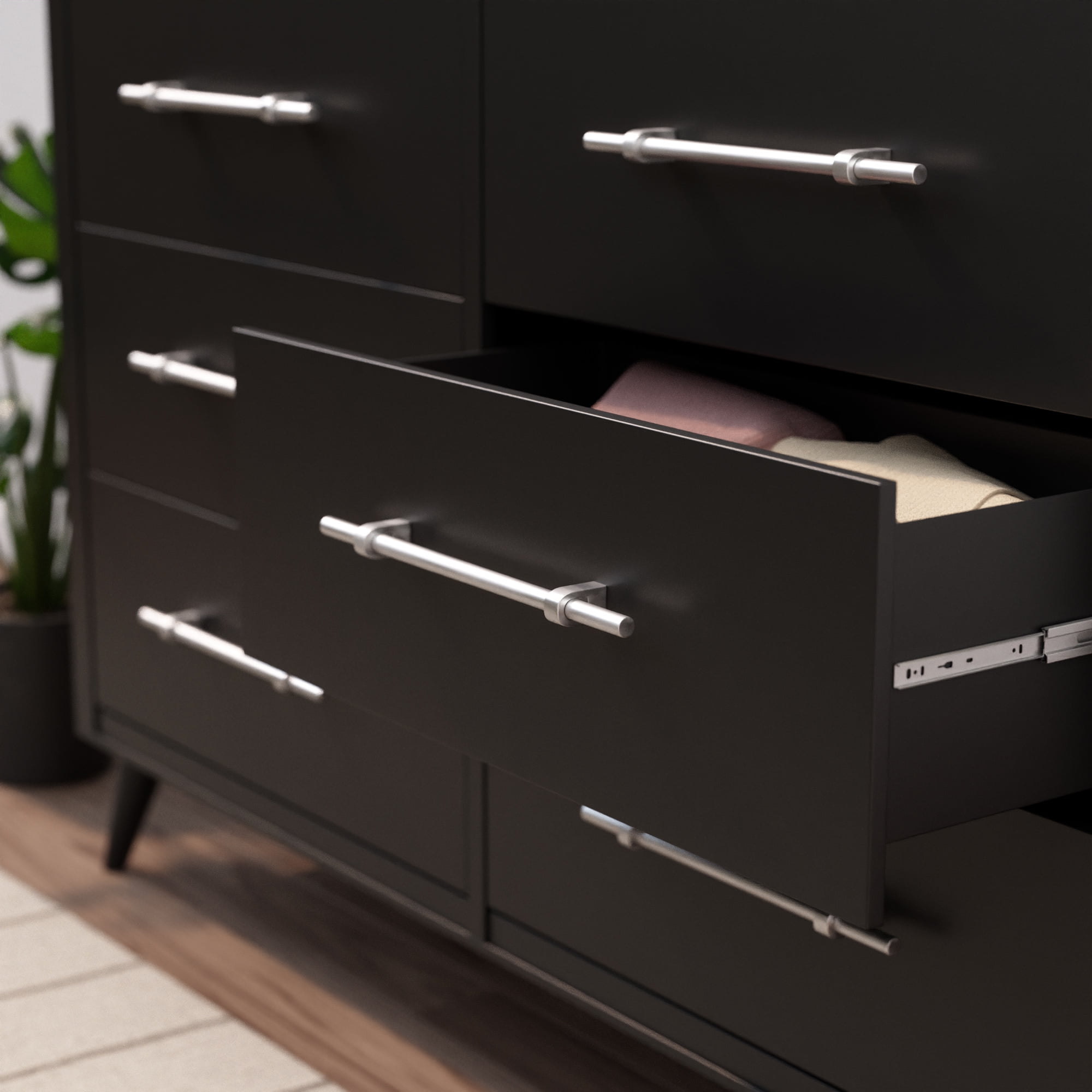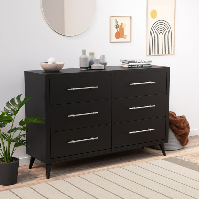 Rest Haven Mid Century Modern 6 Drawer Wood Dresser Black Walmart Com
